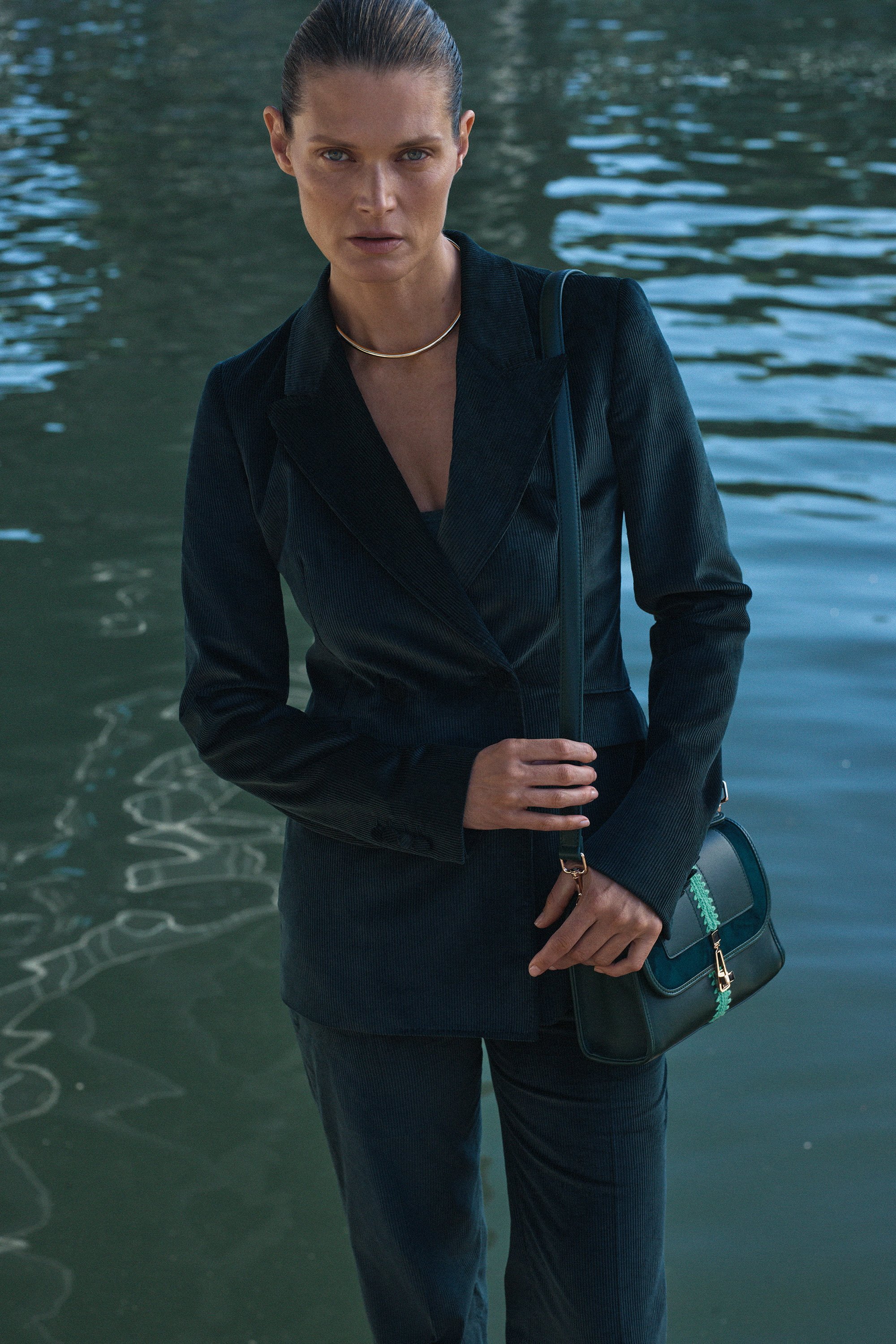 The collection favors architecture over delicacy. Silhouettes are clean and decisive, with tailoring that retains authority while allowing ease. Virgin wool crepe blazers and wide-leg trousers are designed to hold their shape through a long day, not a fleeting moment.